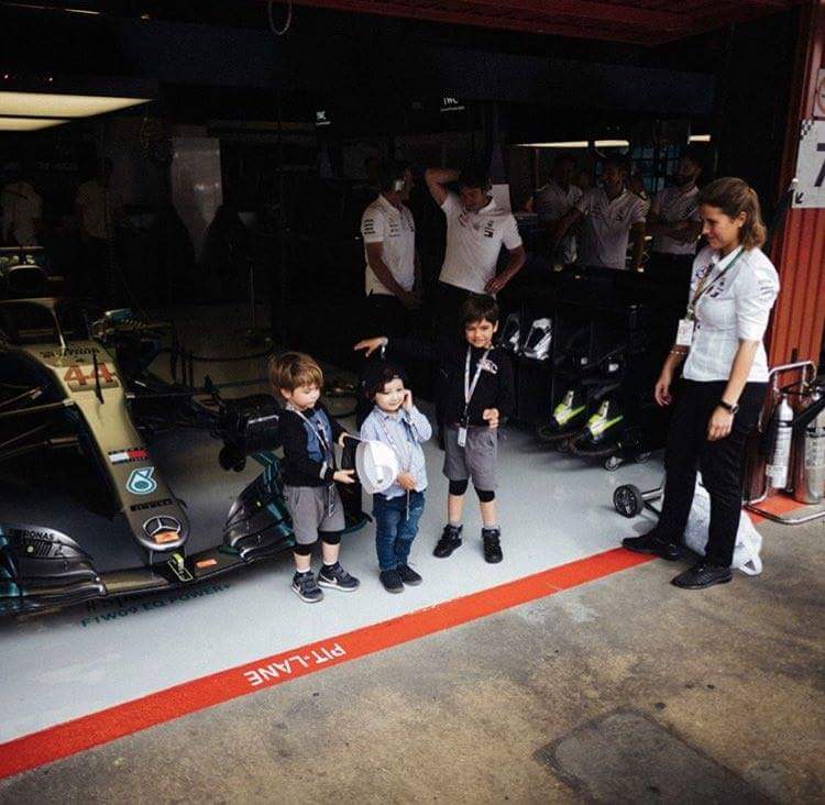 Gerard Piqué aproveitou o dia de folga no FC Barcelona para levar Milan e Sasha para um passeio que incluiu assistir um jogo de basquetebol e conhecer estrelas da Fórmula 1 como Lewis Hamilton, com direito a fotos em carros profissionais.